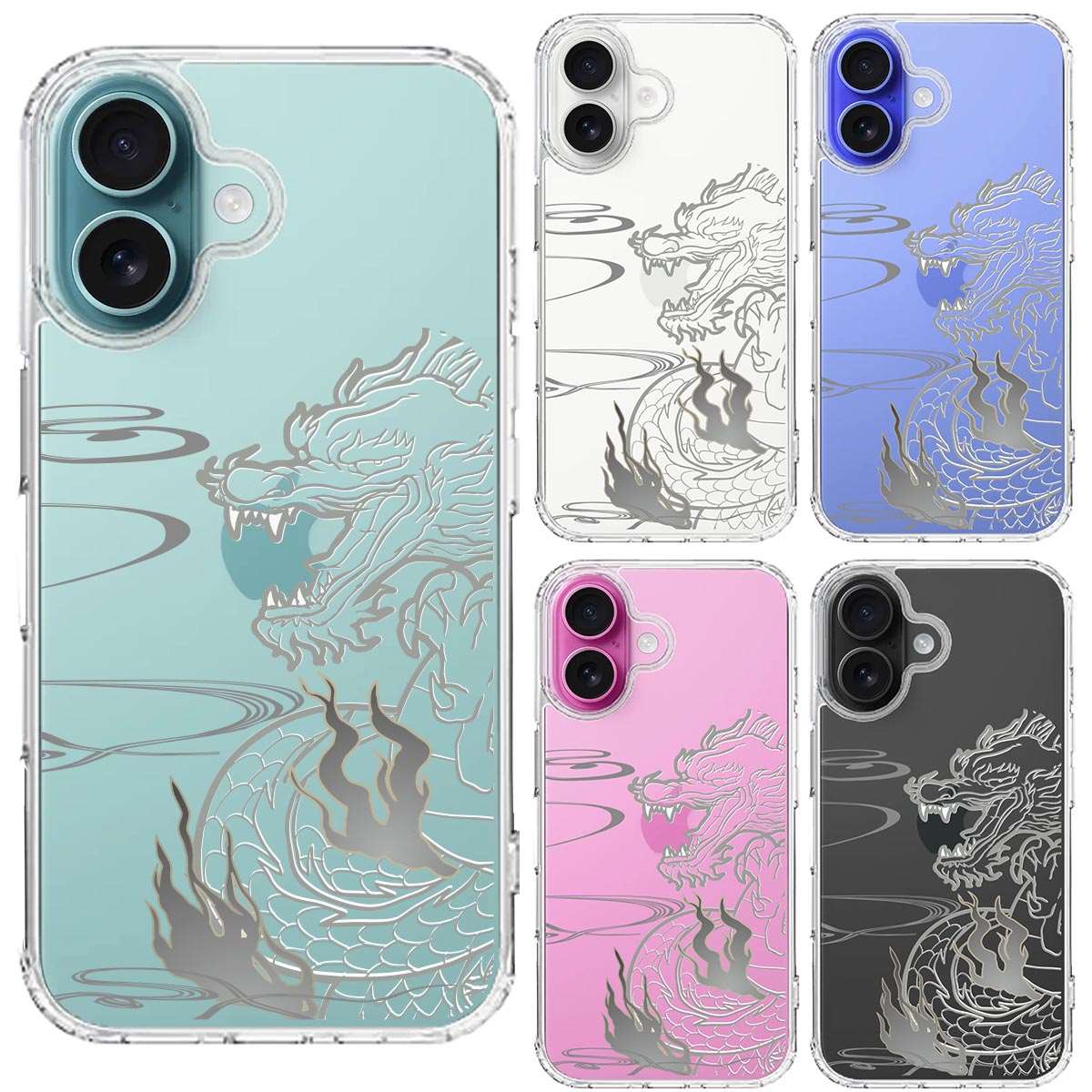 iPhone16 側面ソフト 背面ハード ハイブリッド クリア ケース 龍 1