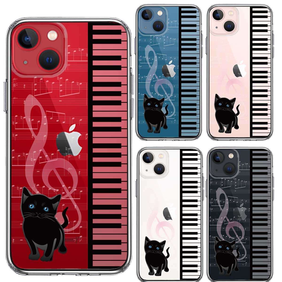 iPhone13mini 側面ソフト 背面ハード ハイブリッド クリア ケースpiano ピアノ 2 猫ふんじゃった
