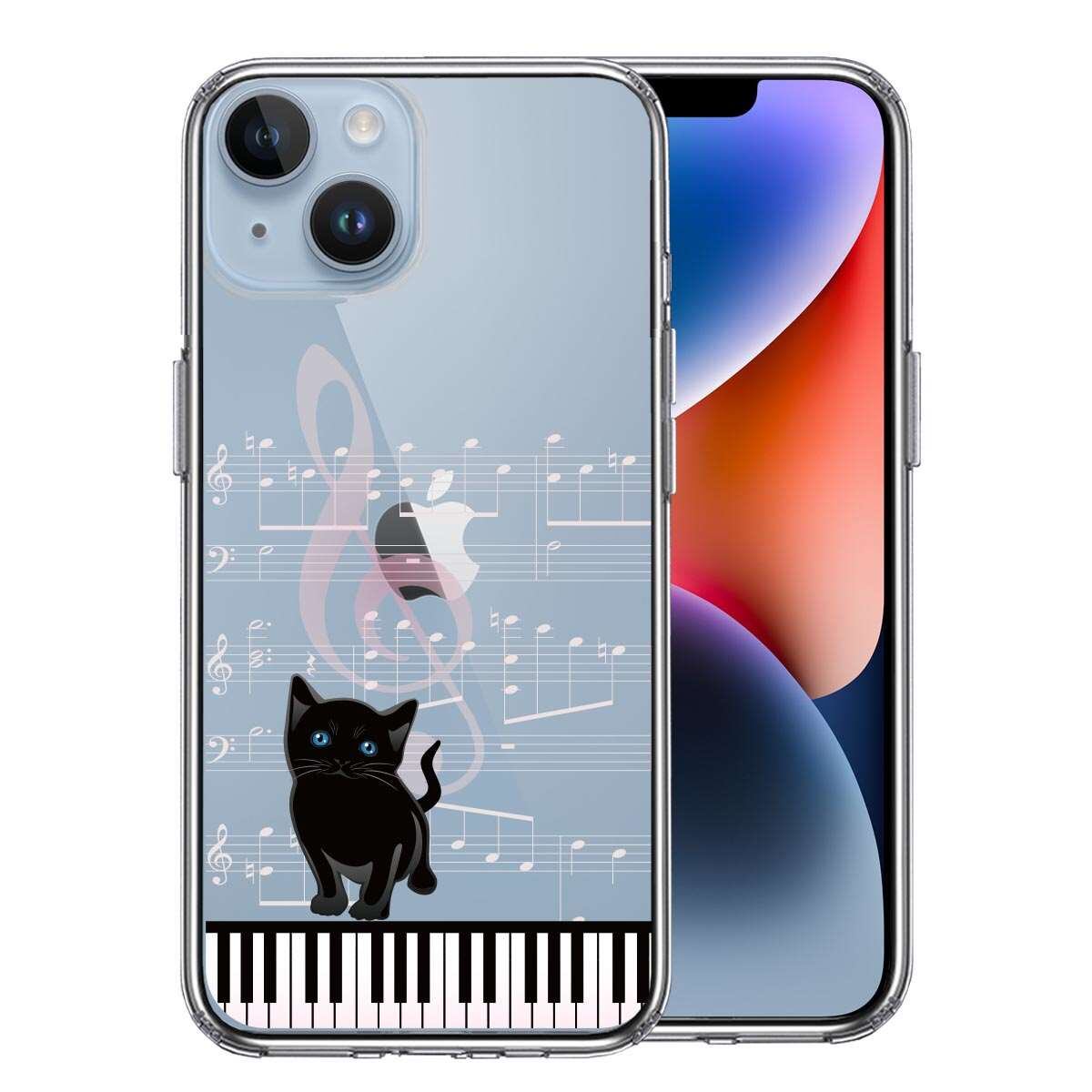 iPhone14 側面ソフト 背面ハード ハイブリッド クリア ケースpiano ピアノ 2 猫ふんじゃった