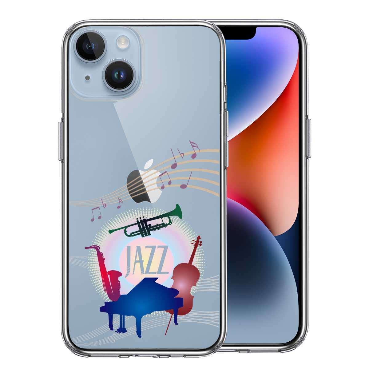 iPhone 14 Plus 側面ソフト 背面ハード ハイブリッド クリア ケース JAZZ 1 楽器 音符