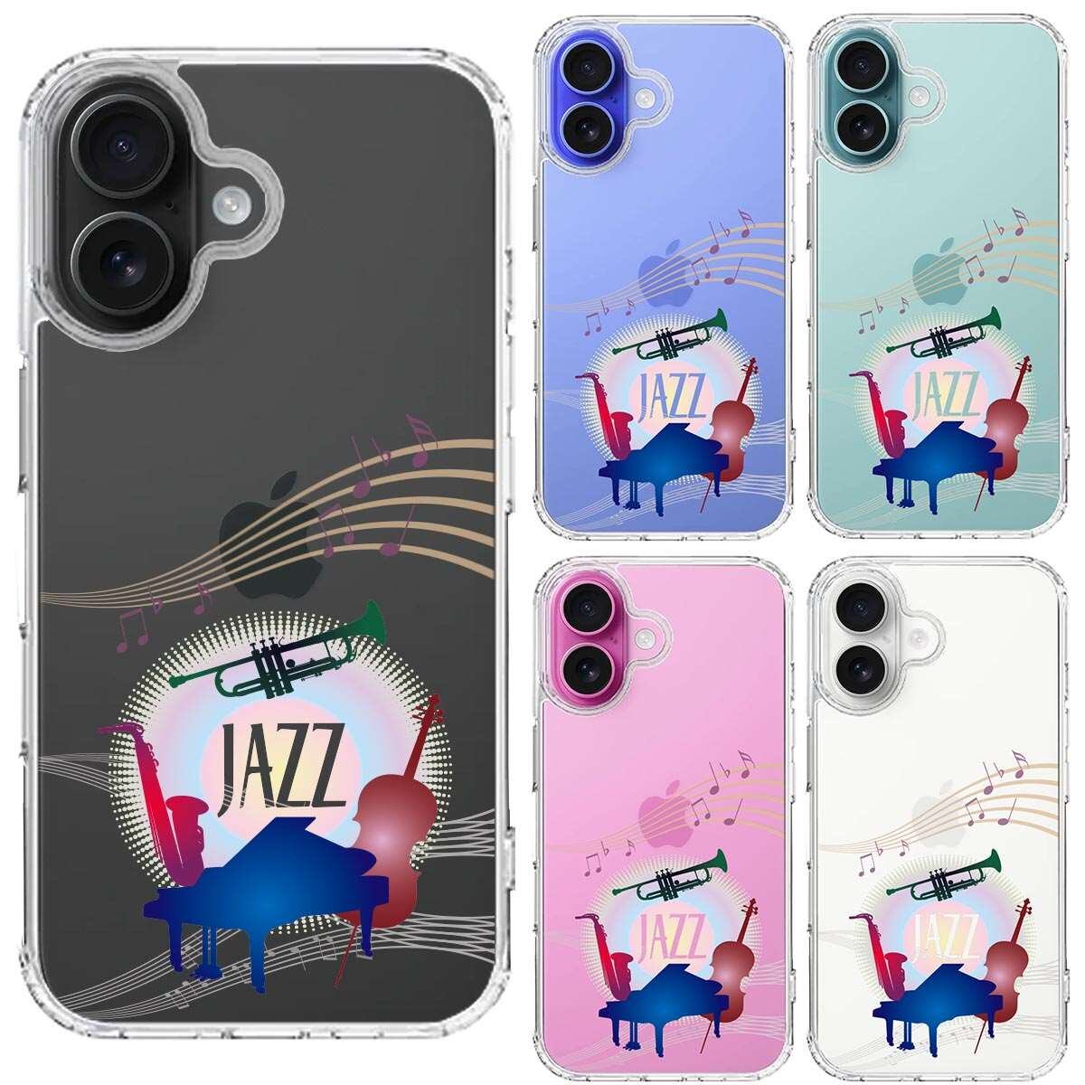 iPhone16 側面ソフト 背面ハード ハイブリッド クリア ケース JAZZ 1 楽器 音符