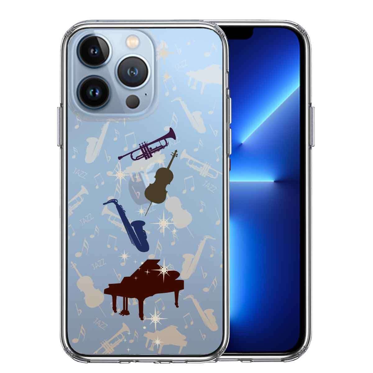 iPhone13 Pro 側面ソフト 背面ハード ハイブリッド クリア ケース JAZZ 2 楽器 音符