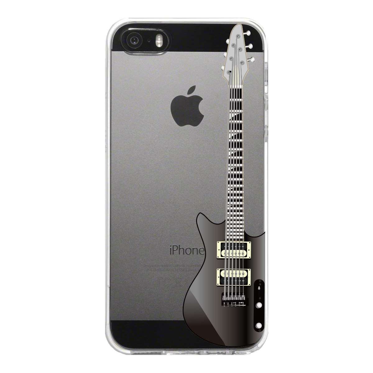 iPhone SE 5S/5 対応 アイフォン ハード クリア ケース カバー シェル ジャケット エレキギター 黒