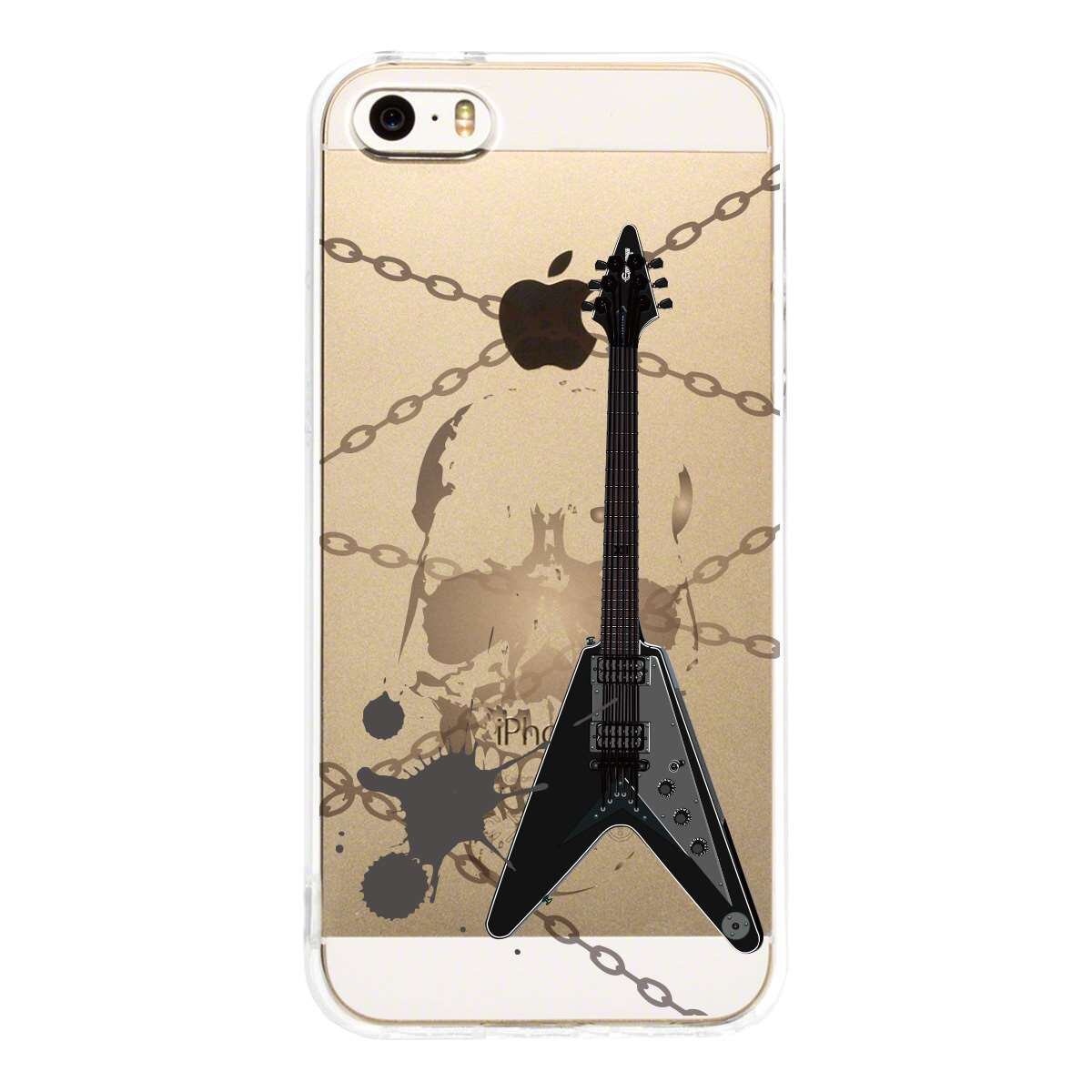 iPhone SE 5S/5 対応 アイフォン ハード クリア ケース カバー シェル ジャケット エレキギター スカル