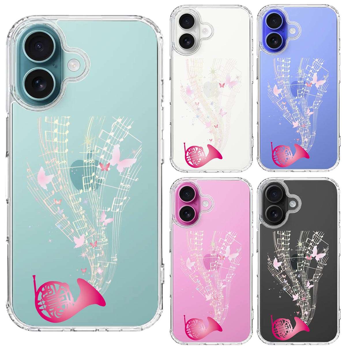 iPhone16 側面ソフト 背面ハード ハイブリッド クリア ケース ホルン 音符