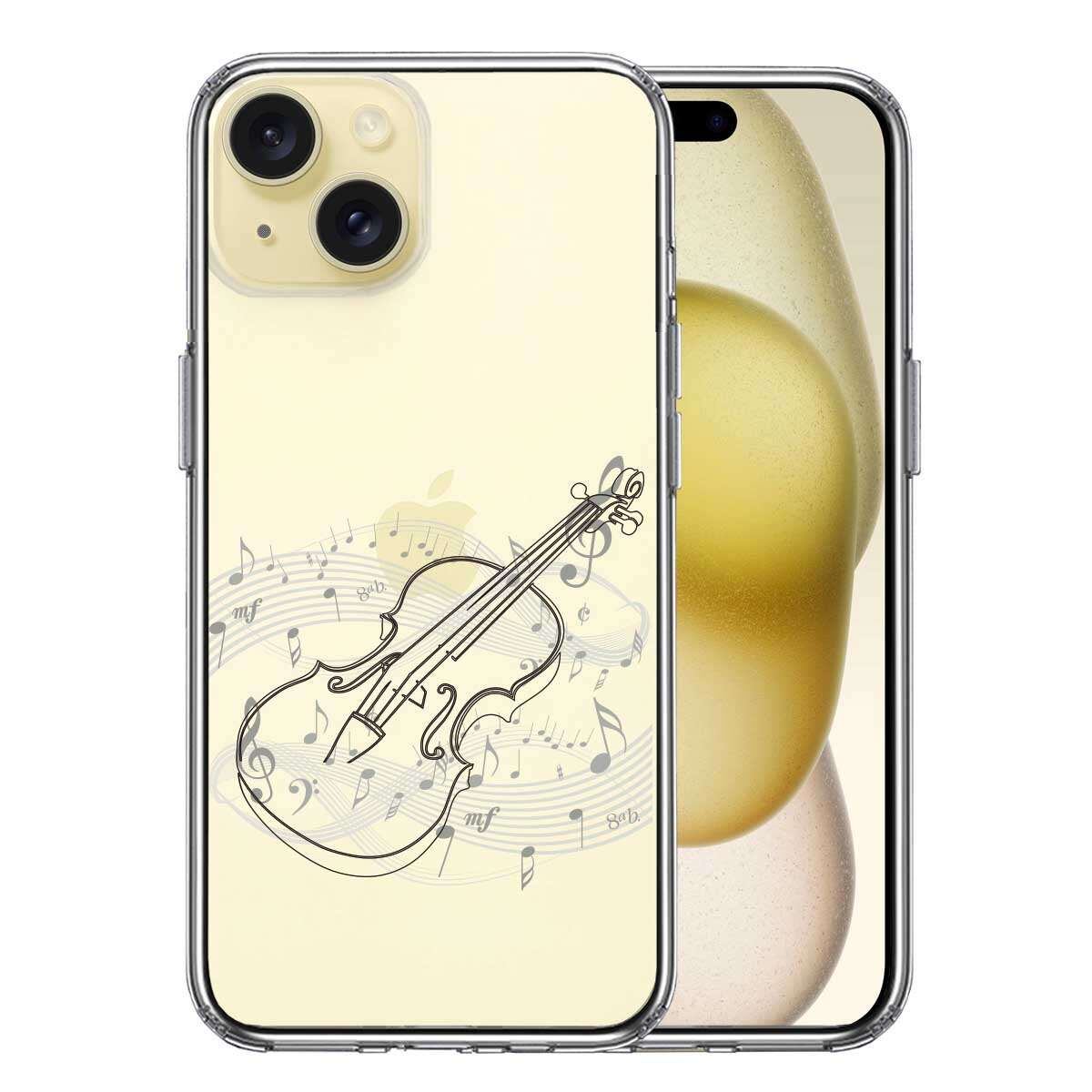 iPhone15 側面ソフト 背面ハード ハイブリッド クリア ケース ヴァイオリン 4 ブラック