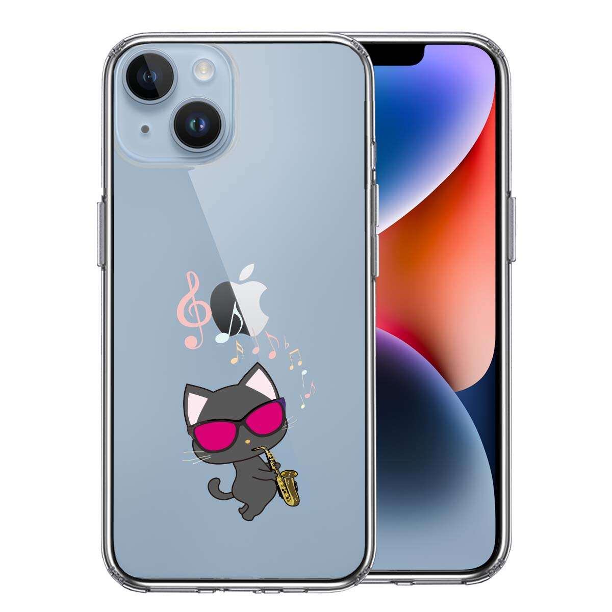 iPhone 14 Plus 側面ソフト 背面ハード ハイブリッド クリア ケース サックス ねこ