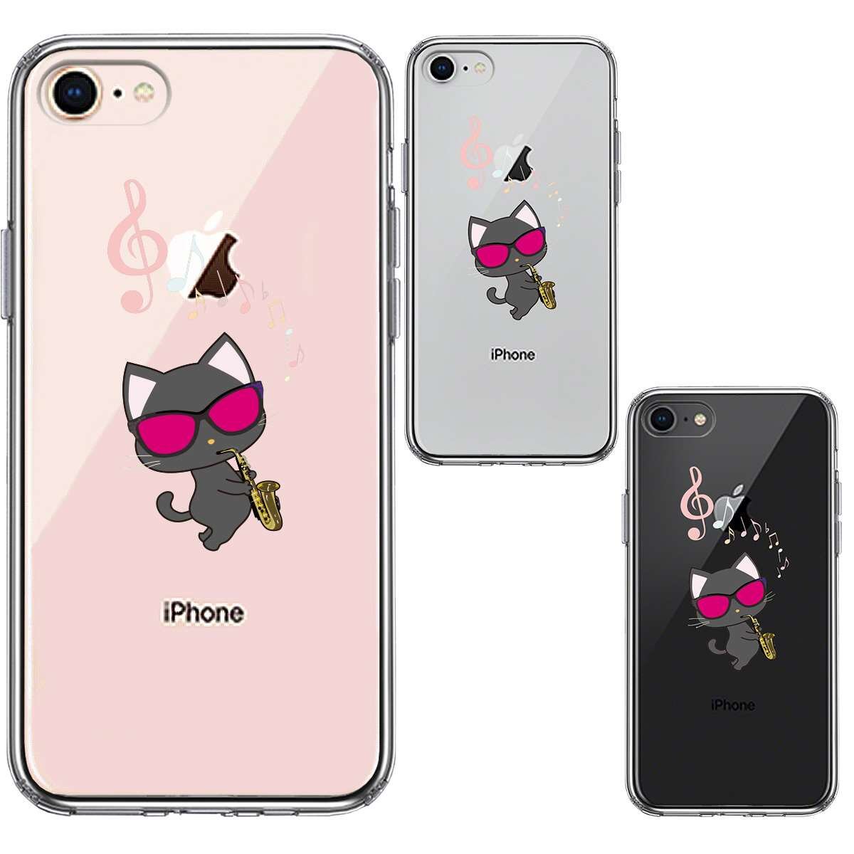 iPhone7 iPhone8 兼用 側面ソフト 背面ハード ハイブリッド クリア ケース サックス ねこ