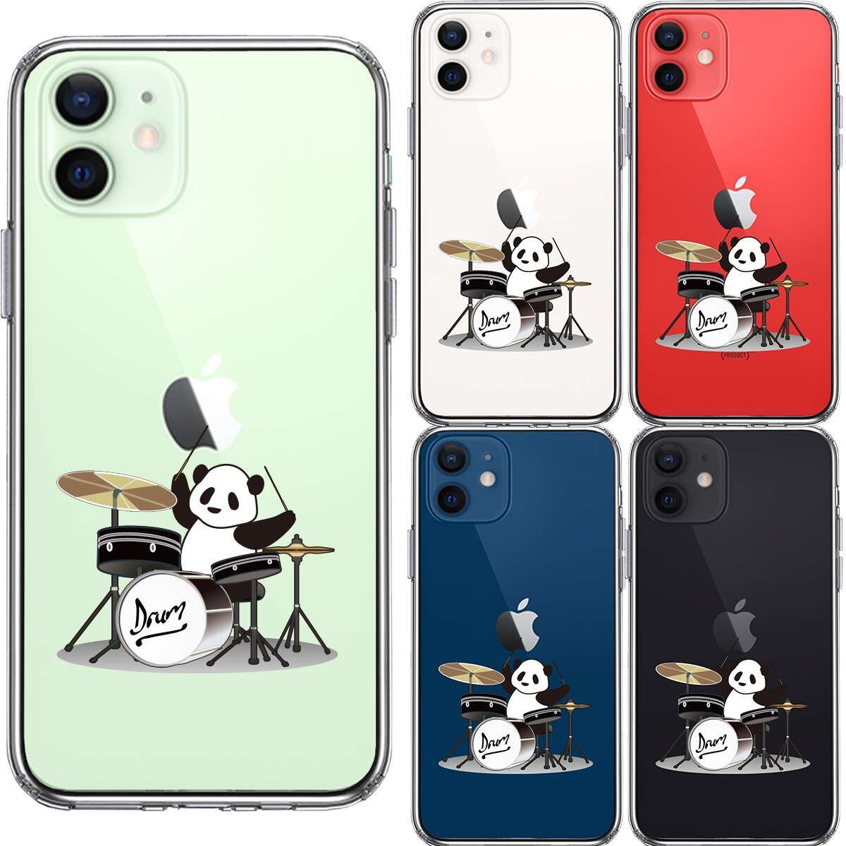iPhone12mini 側面ソフト 背面ハード ハイブリッド クリア ケース ドラム パンダ
