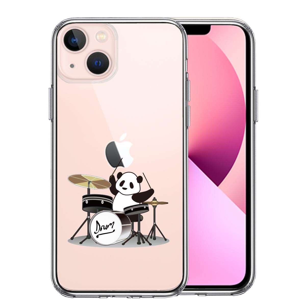 iPhone13mini 側面ソフト 背面ハード ハイブリッド クリア ケース ドラム パンダ