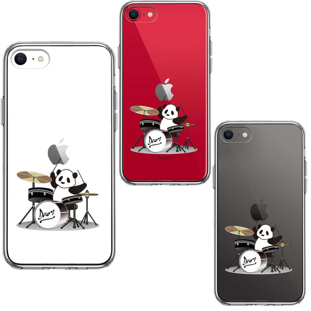 iPhoneSE(第3 第2世代) 側面ソフト 背面ハード ハイブリッド クリア ケース ドラム パンダ