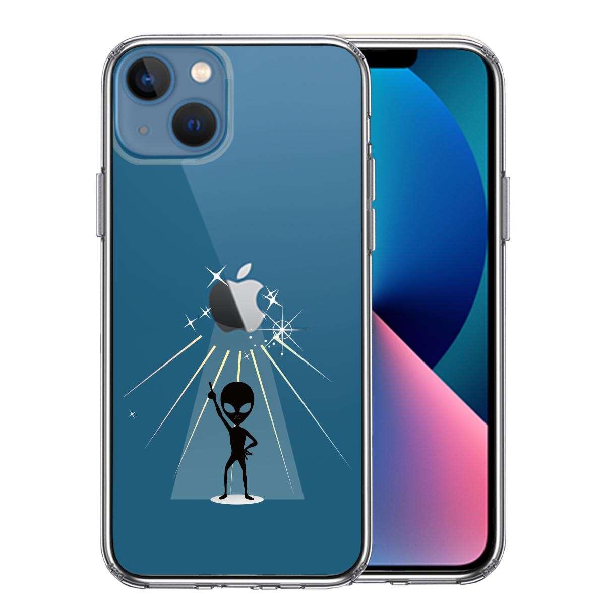 iPhone13 側面ソフト 背面ハード ハイブリッド クリア ケース 宇宙人 フィーバー ブラック