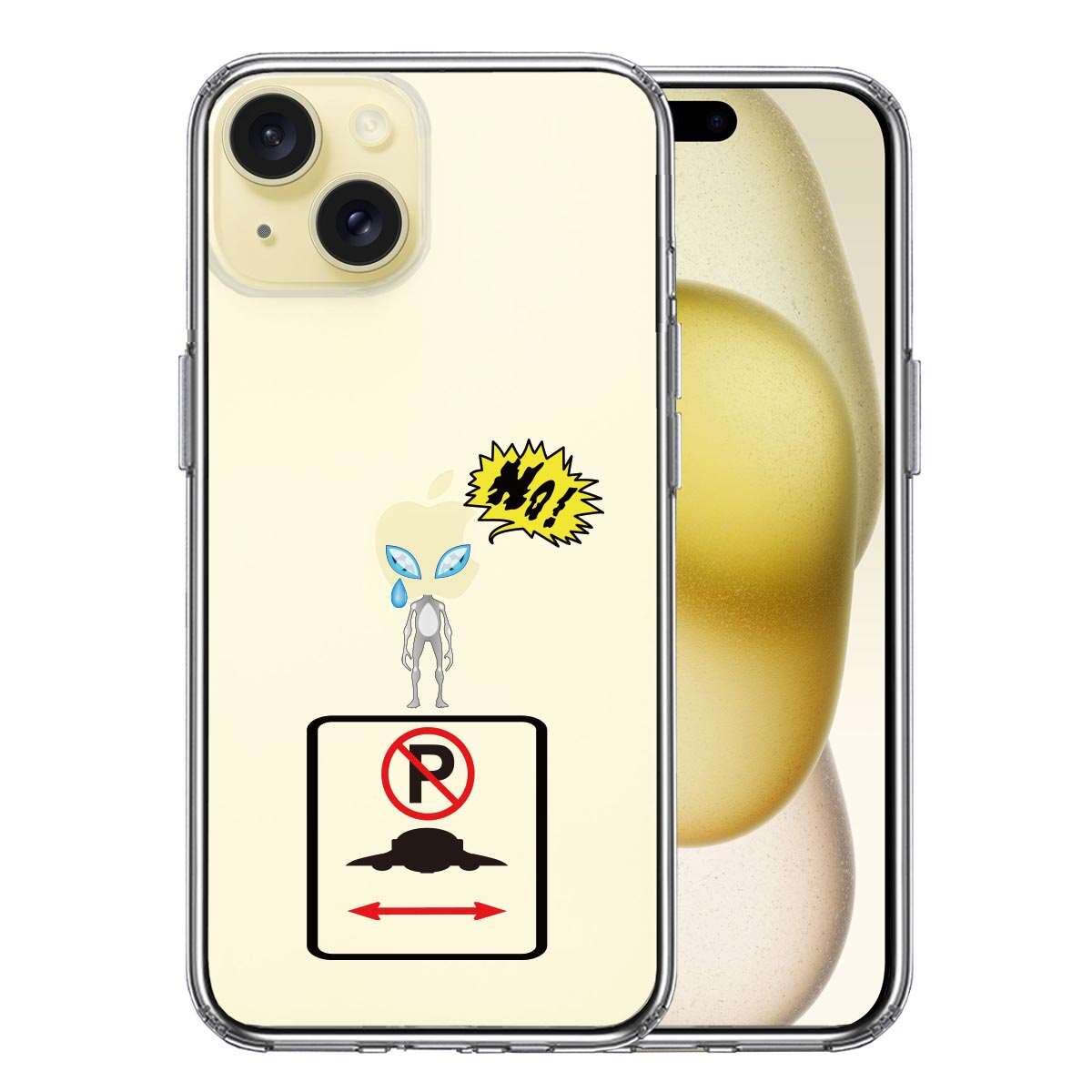 iPhone15 側面ソフト 背面ハード ハイブリッド クリア ケース 未確認飛行物体 駐車禁止