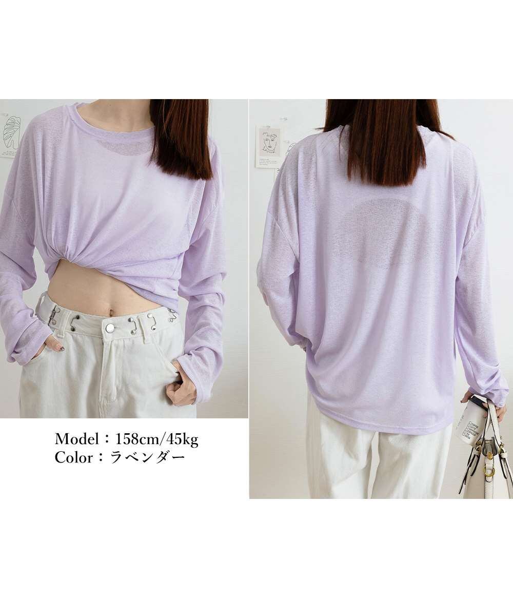 キーワード:着やせ長袖トップス 軽やか無地ロンt黒 肌見せ カットソー