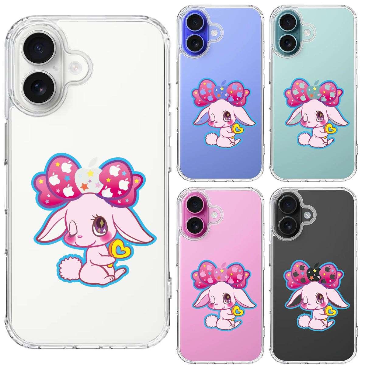 iPhone16 側面ソフト 背面ハード ハイブリッド クリア ケース プーラ うさぎ