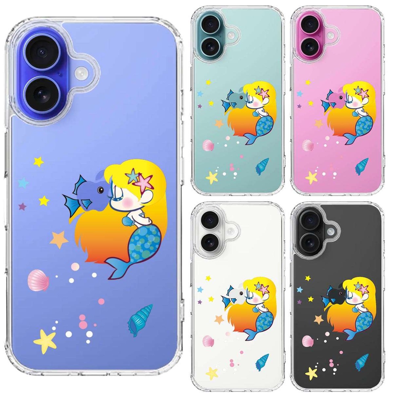 iPhone16 側面ソフト 背面ハード ハイブリッド クリア ケース Young mermaid 3 人魚姫 マーメイド アリエル