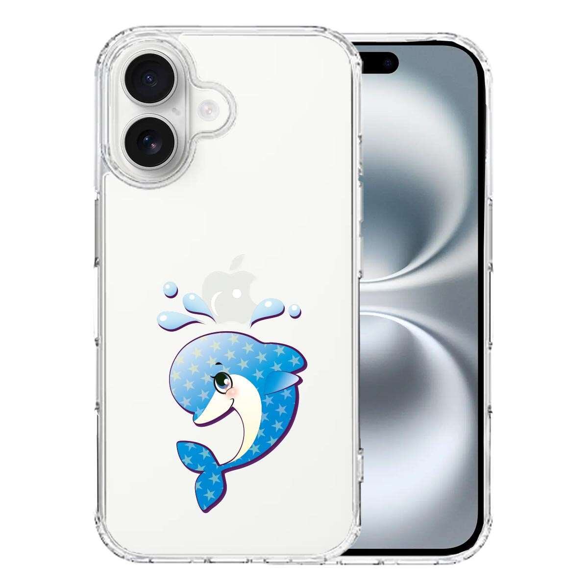 iPhone16 側面ソフト 背面ハード ハイブリッド クリア ケース イルカ ドルファン