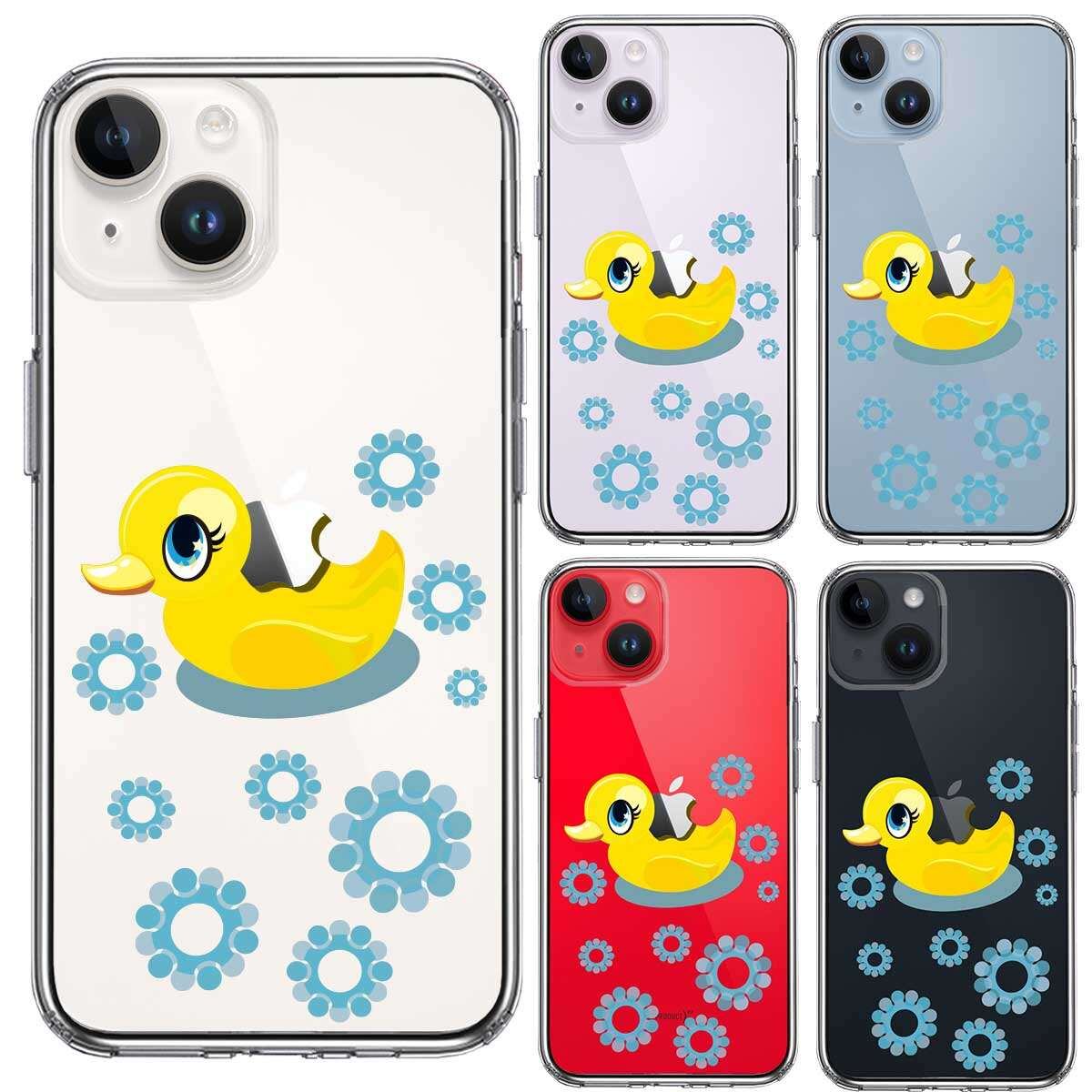 iPhone14 側面ソフト 背面ハード ハイブリッド クリア ケース アヒルちゃん あひる ブルー