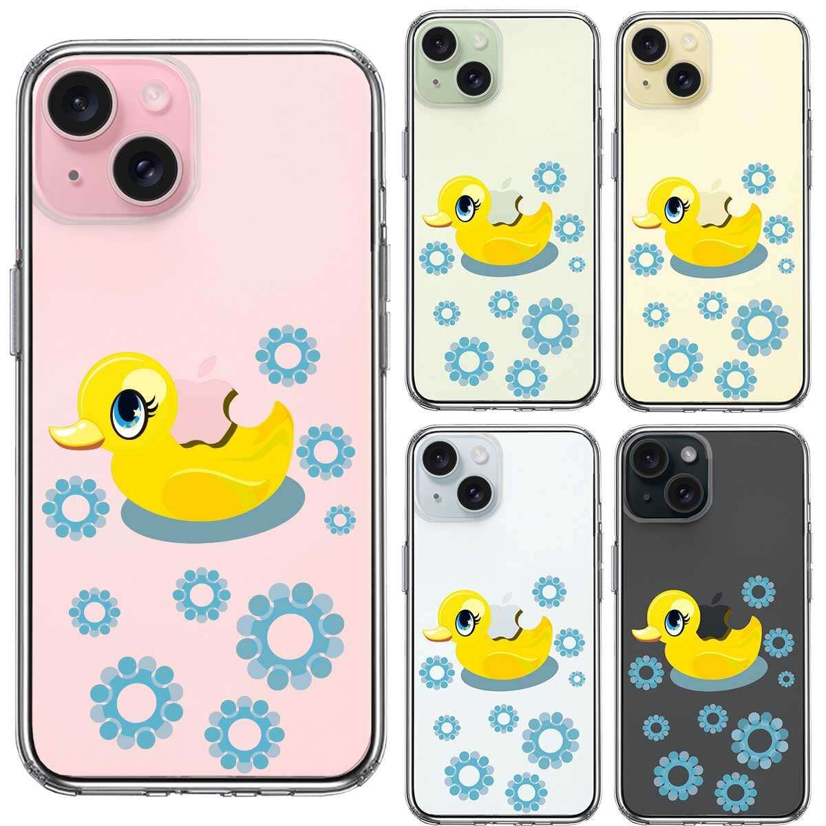 iPhone15 側面ソフト 背面ハード ハイブリッド クリア ケース アヒルちゃん あひる ブルー