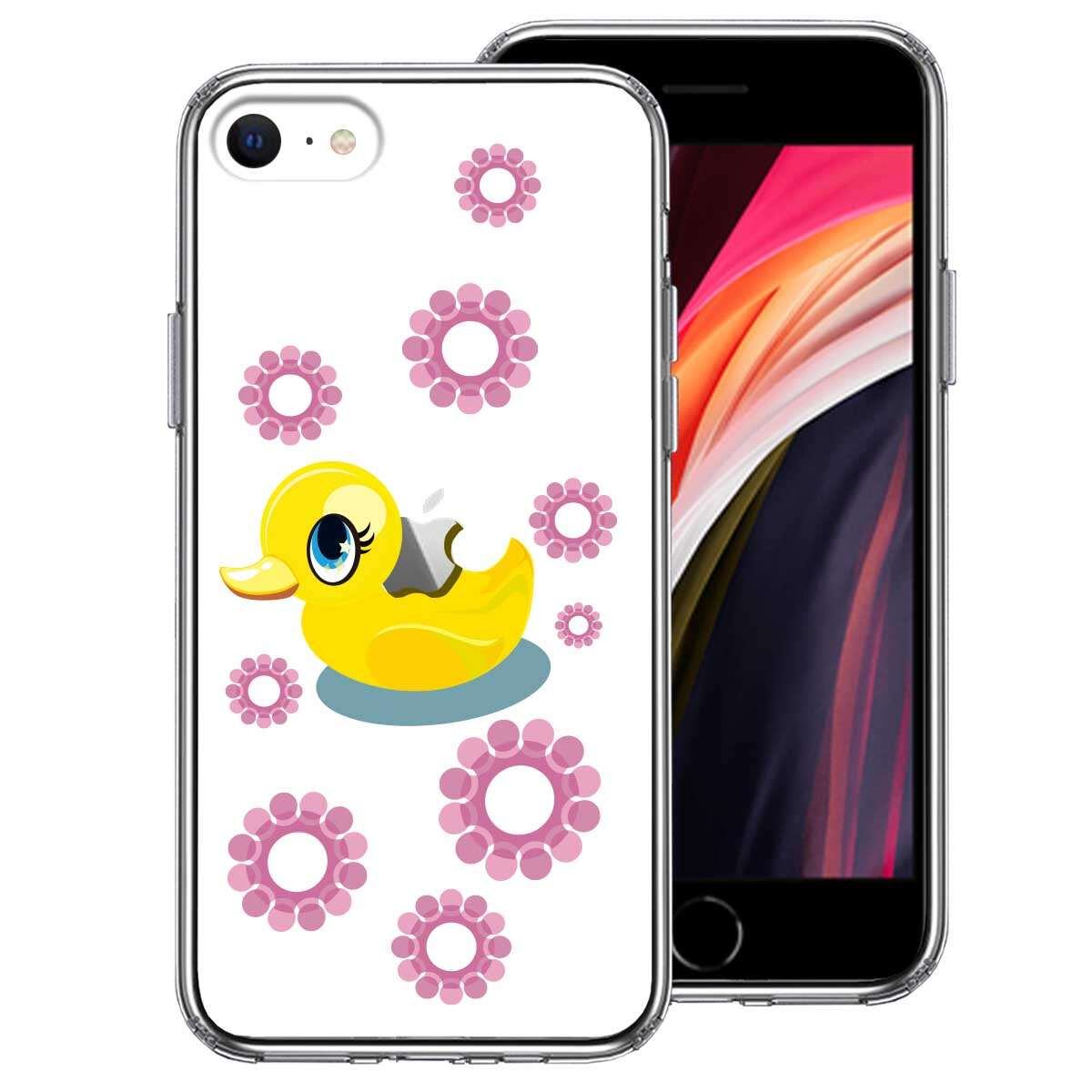 iPhoneSE(第3 第2世代) 側面ソフト 背面ハード ハイブリッド クリア ケース アヒルちゃん あひる ピンク