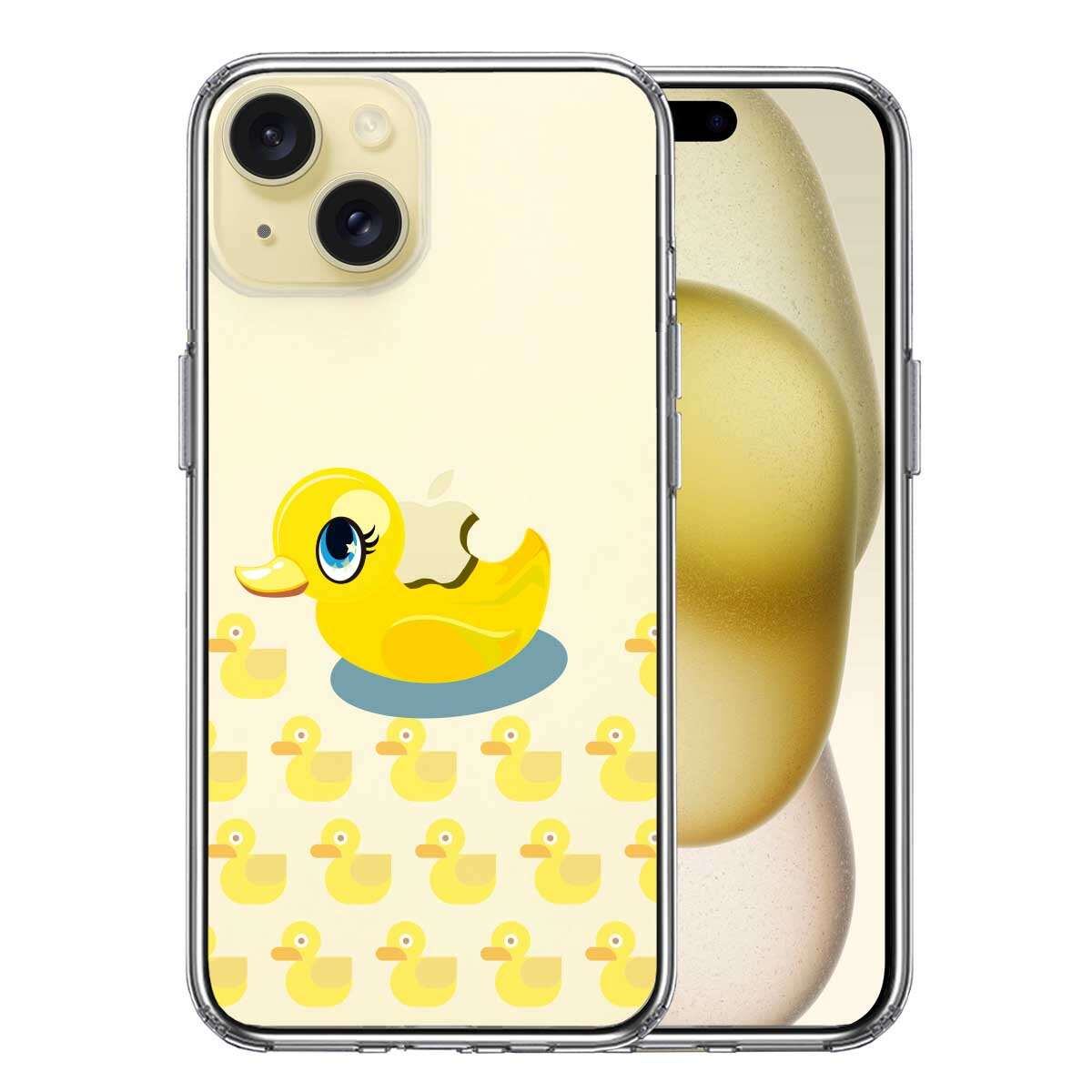 iPhone 15 Plus 側面ソフト 背面ハード ハイブリッド クリア ケース アヒルちゃん あひる イエロー