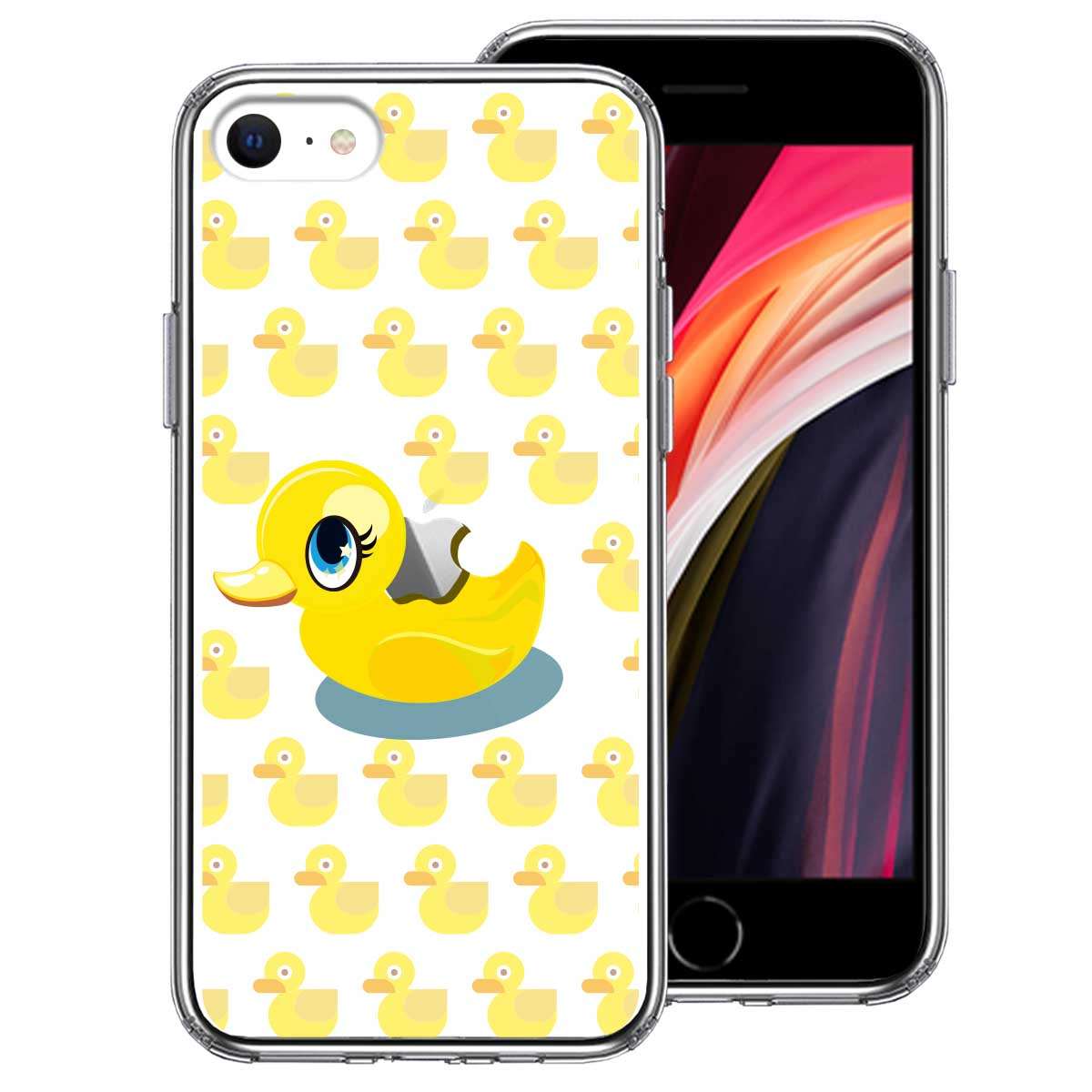 iPhoneSE(第3 第2世代) 側面ソフト 背面ハード ハイブリッド クリア ケース アヒルちゃん あひる イエロー