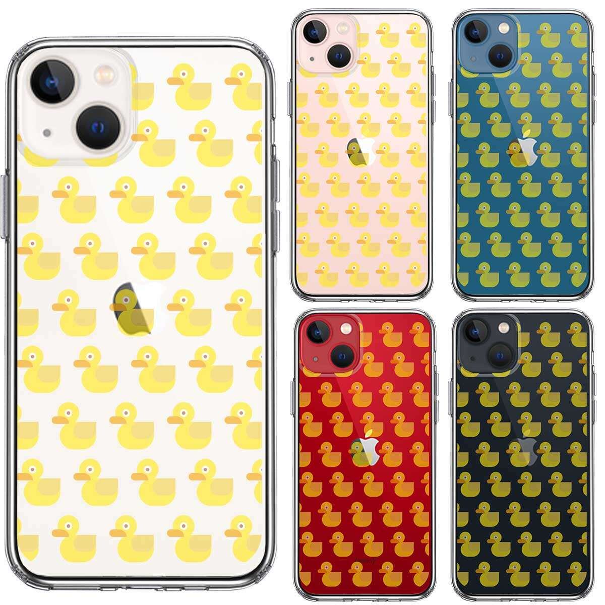 iPhone13 側面ソフト 背面ハード ハイブリッド クリア ケース アヒルちゃん あひる だらけ