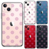 iPhone13 側面ソフト 背面ハード ハイブリッド クリア ケース 水玉 パープルピンク