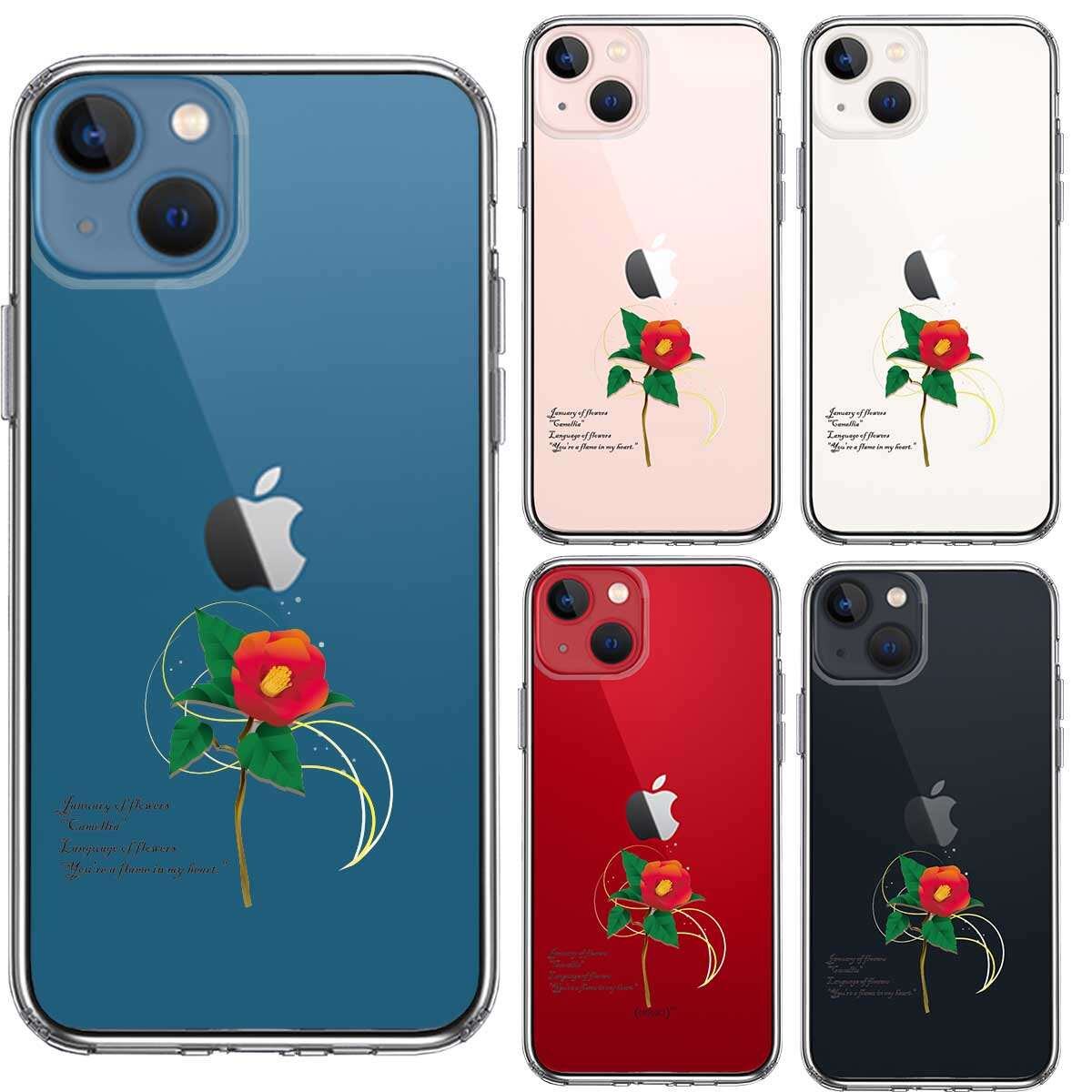 iPhone13 側面ソフト 背面ハード ハイブリッド クリア ケース 一輪花 1月 椿 つばき