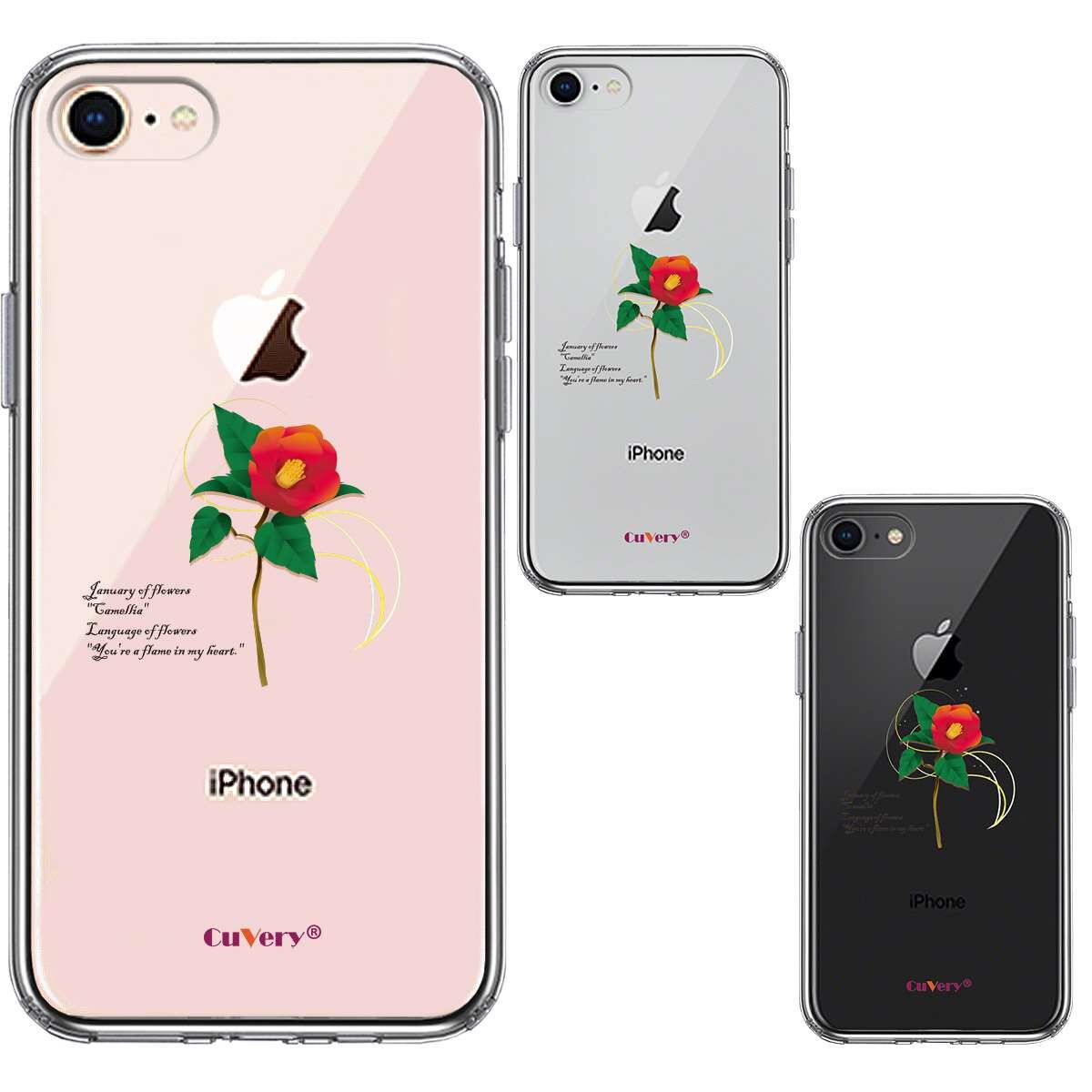 iPhone7 iPhone8 兼用 側面ソフト 背面ハード ハイブリッド クリア ケース 一輪花 1月 椿 つばき