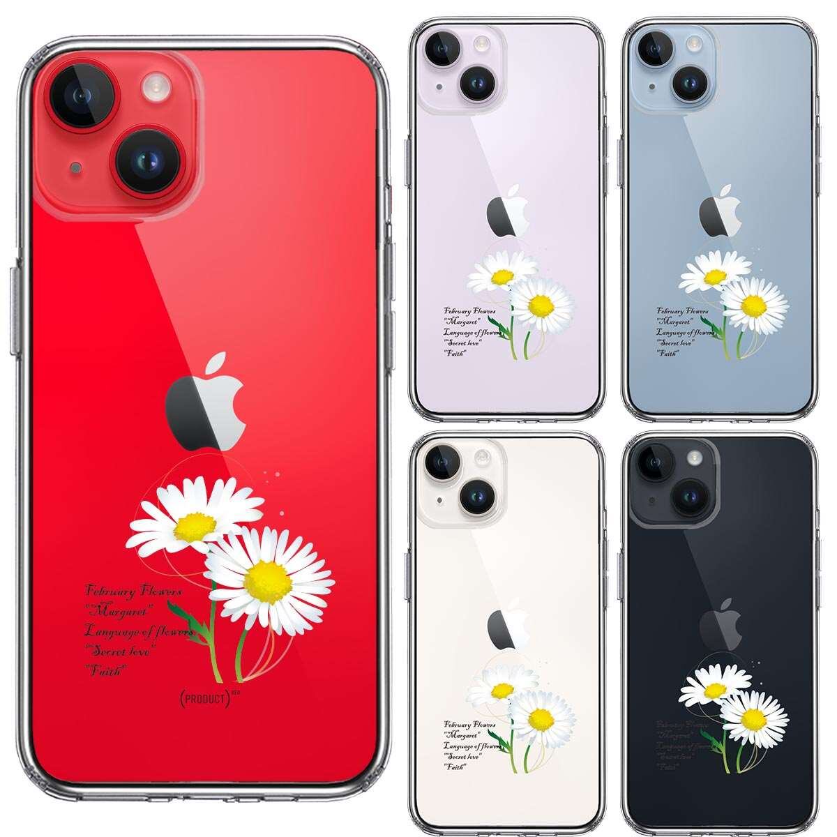 iPhone14 側面ソフト 背面ハード ハイブリッド クリア ケース 一輪花 2月 マーガレット