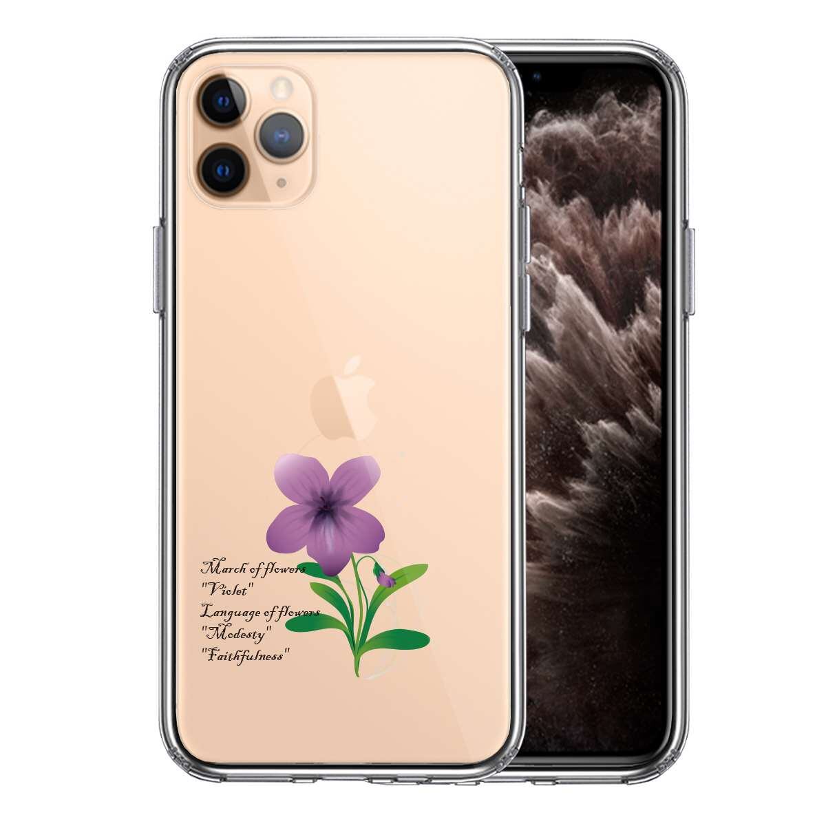iPhone11pro 側面ソフト 背面ハード ハイブリッド クリア ケース 3月生まれ 花 一輪花 すみれ 花言葉 付き