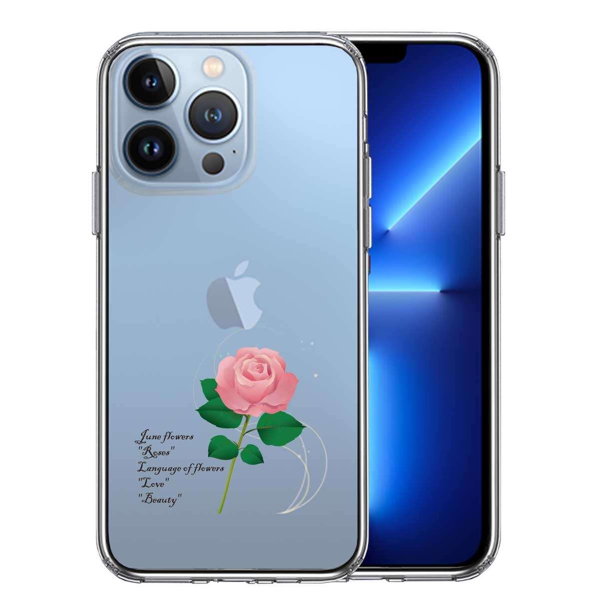 iPhone13 Pro 側面ソフト 背面ハード ハイブリッド クリア ケース 一輪花 6月 薔薇 バラ
