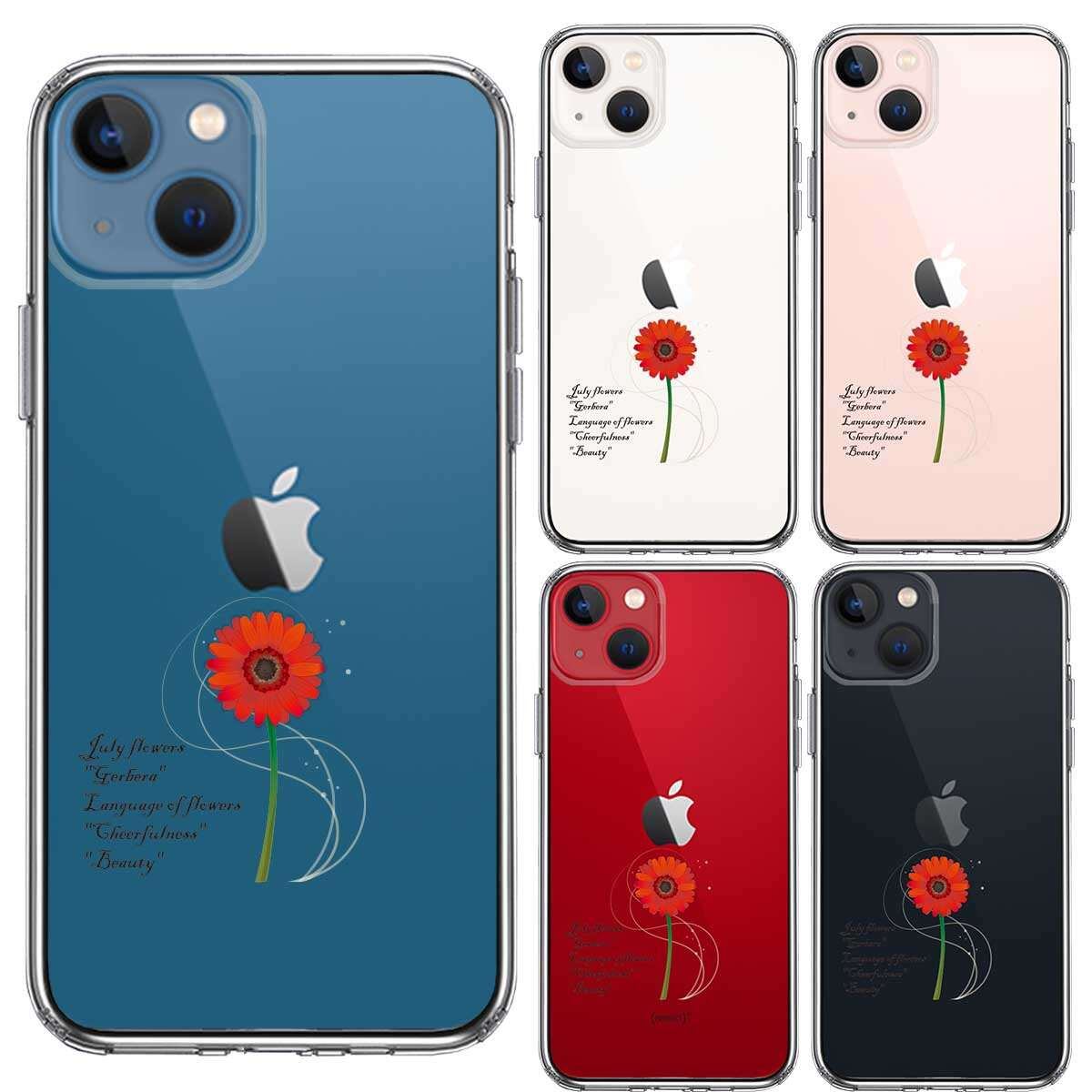 iPhone13mini 側面ソフト 背面ハード ハイブリッド クリア ケース 一輪花 7月 ガーベラ