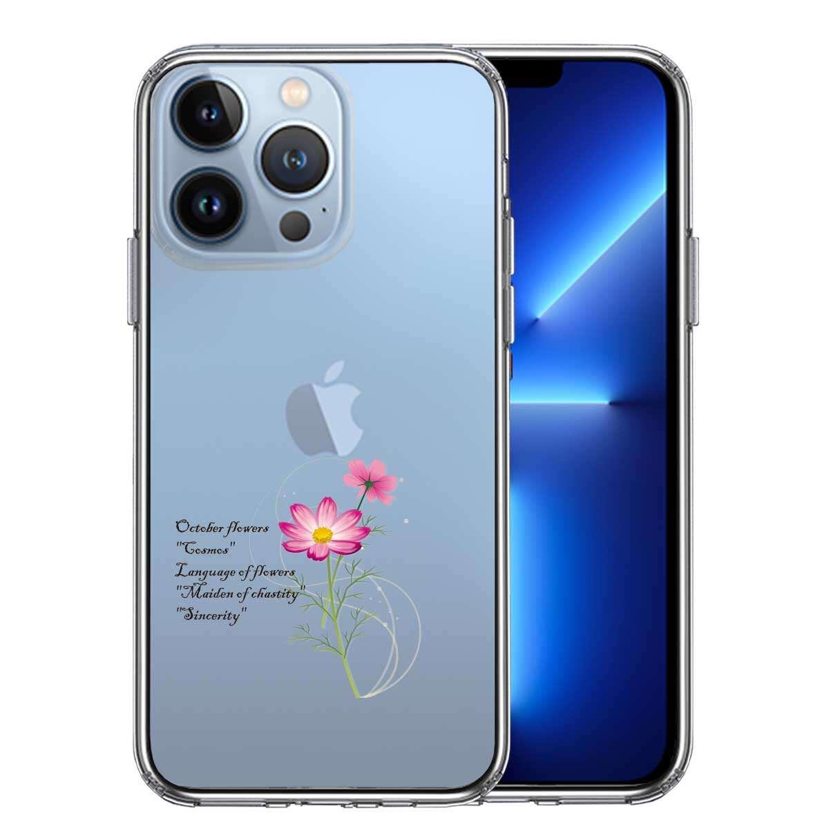 iPhone13 Pro 側面ソフト 背面ハード ハイブリッド クリア ケース 一輪花 10月 コスモス