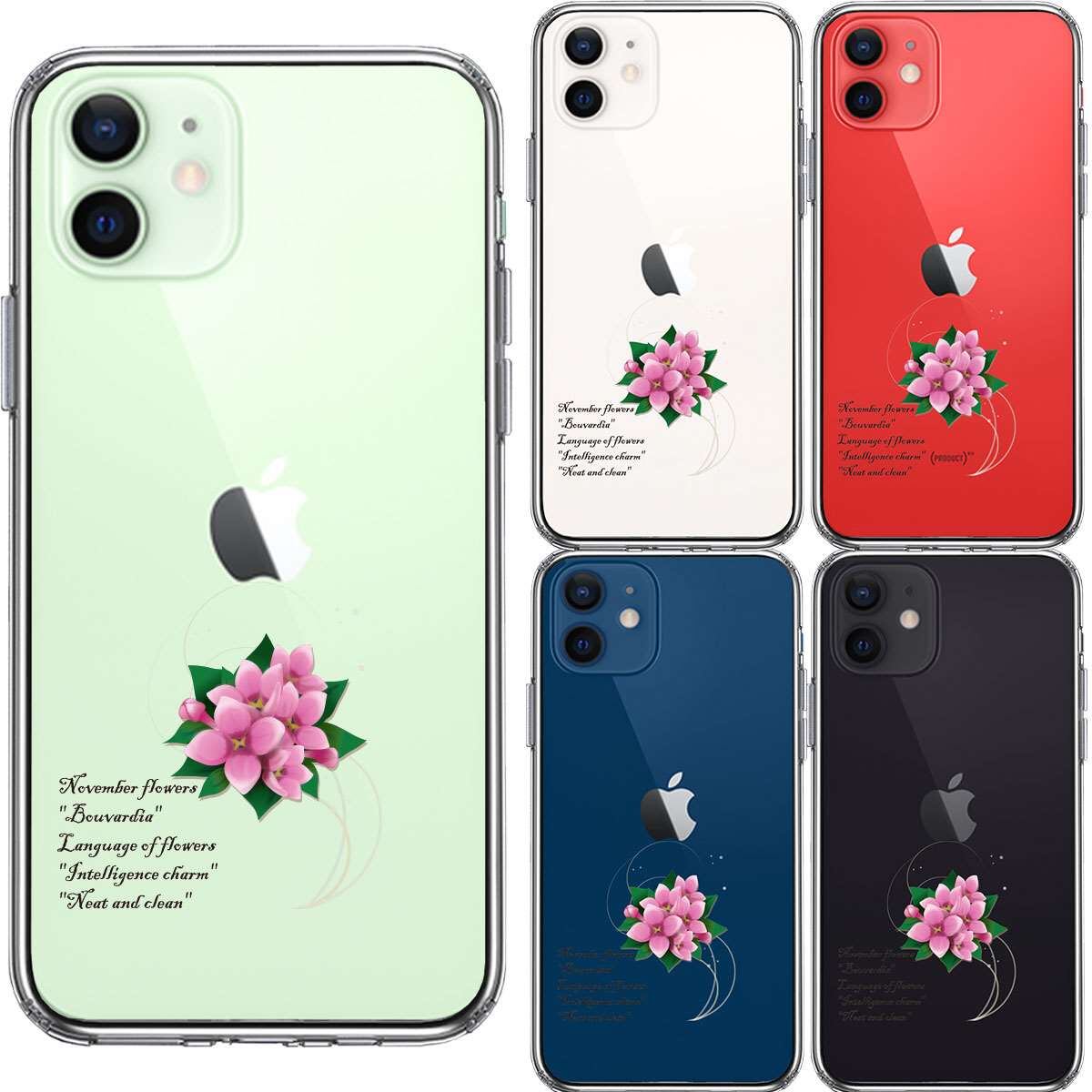 iPhone12 側面ソフト 背面ハード ハイブリッド クリア ケース 一輪花 11月 ブバルディア