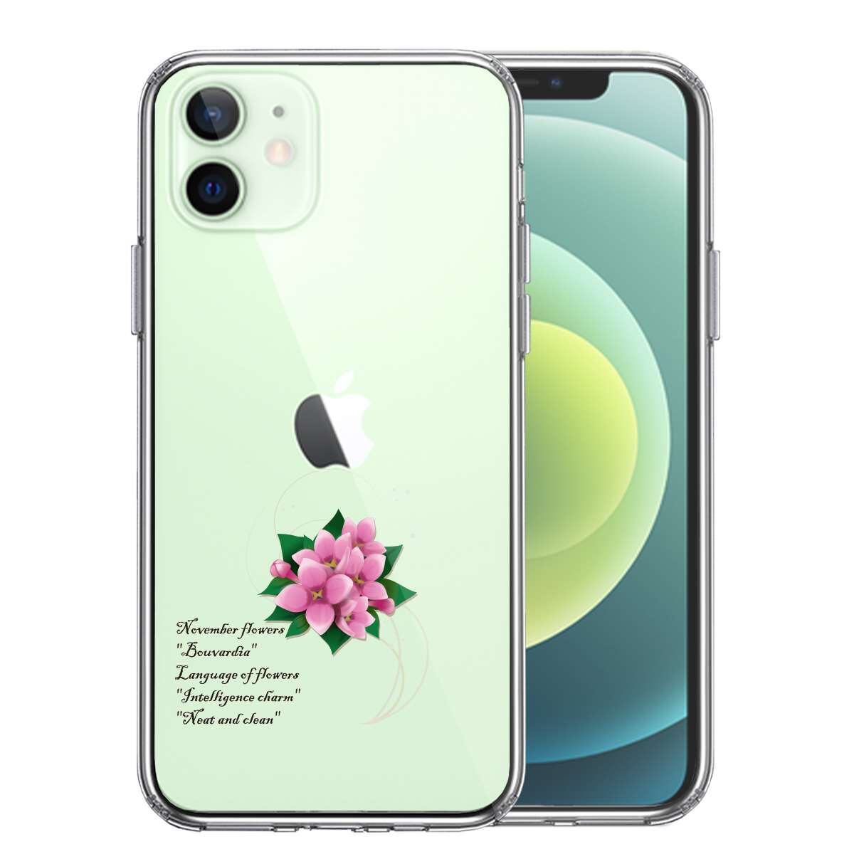 iPhone12mini 側面ソフト 背面ハード ハイブリッド クリア ケース 一輪花 11月 ブバルディア