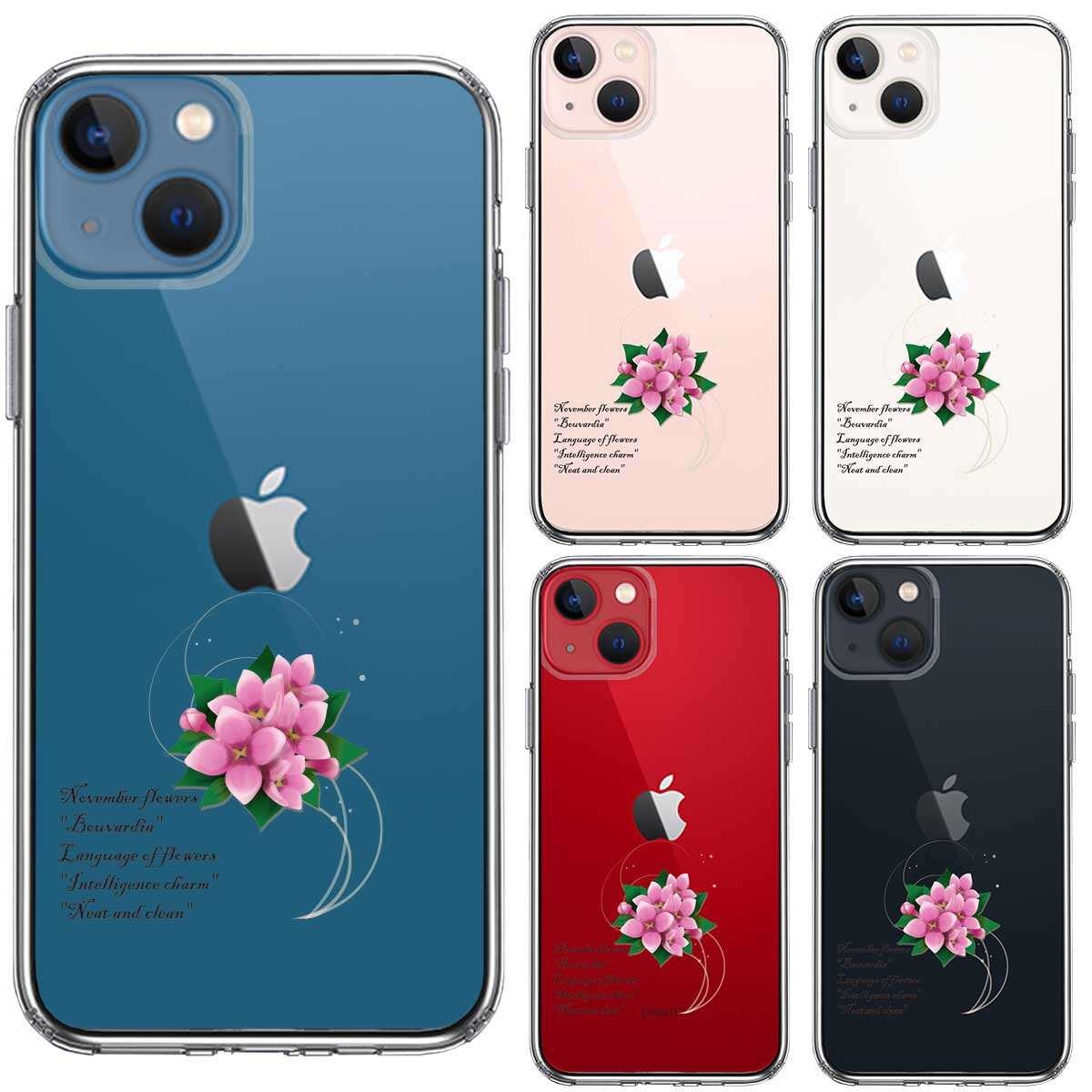 iPhone13mini 側面ソフト 背面ハード ハイブリッド クリア ケース 一輪花 11月 ブバルディア