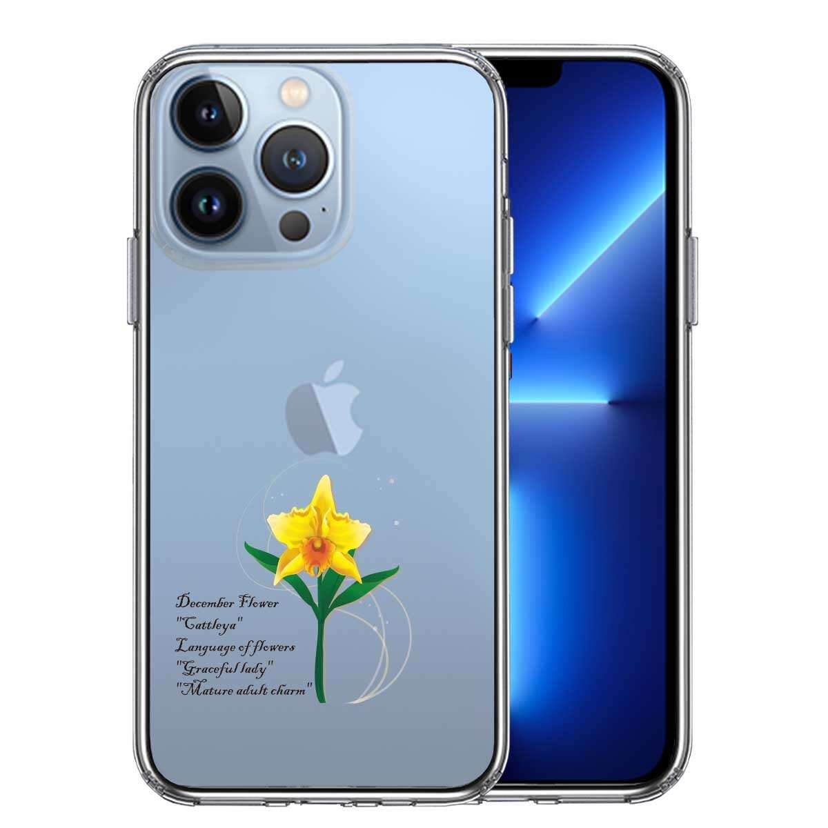 iPhone13 Pro 側面ソフト 背面ハード ハイブリッド クリア ケース 一輪花 12月 カトレア