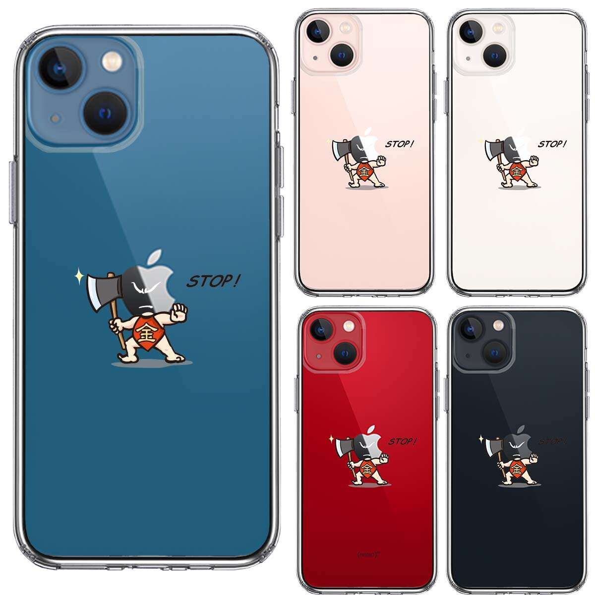 iPhone13mini 側面ソフト 背面ハード ハイブリッド クリア ケース 金太郎 STOP!