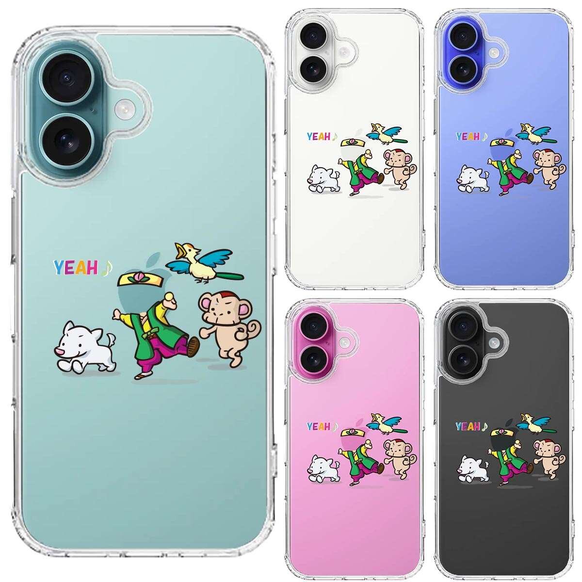 iPhone16 側面ソフト 背面ハード ハイブリッド クリア ケース 桃太郎 パーティー 軍団