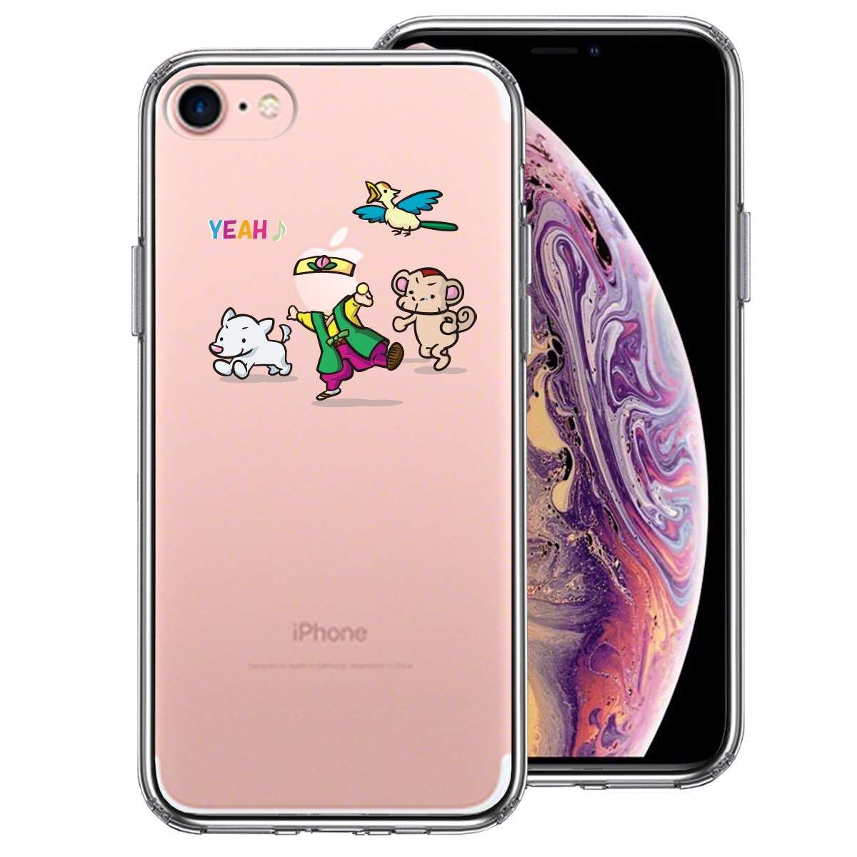 iPhone7 側面ソフト 背面ハード ハイブリッド クリア ケース 桃太郎 パーティー 軍団