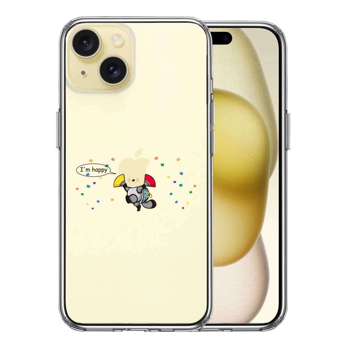 iPhone15 側面ソフト 背面ハード ハイブリッド クリア ケース ぶんぶく茶釜 とっても幸せ !