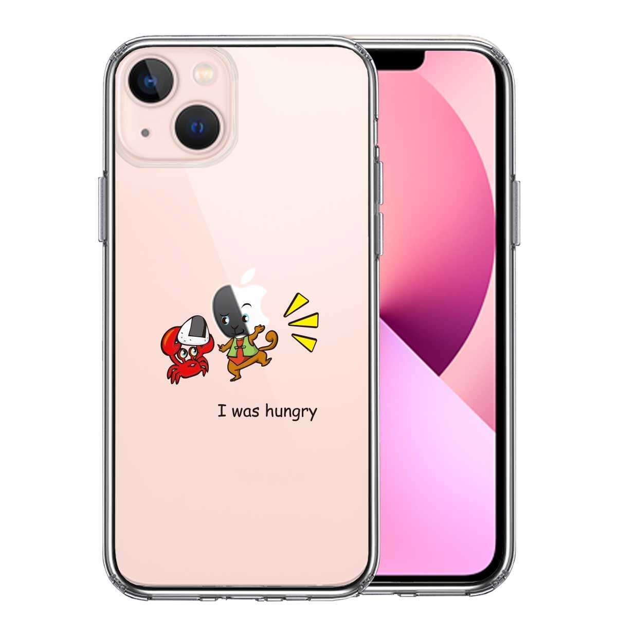 iPhone13 側面ソフト 背面ハード ハイブリッド クリア ケース 猿 サル 蟹 カニ 合戦 腹減った !