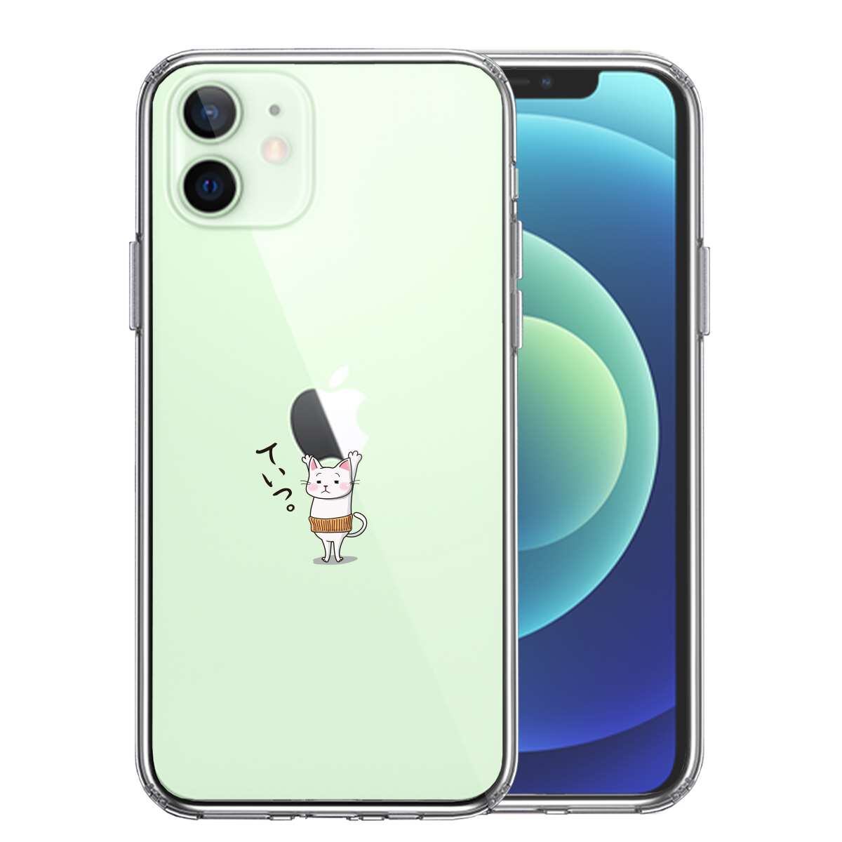 iPhone12 側面ソフト 背面ハード ハイブリッド クリア ケース 猫 ネコ 腹巻 Appleは重いなぁ