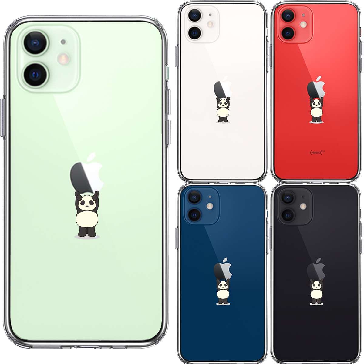 iPhone12 側面ソフト 背面ハード ハイブリッド クリア ケース パンダ 重量挙げ 並感