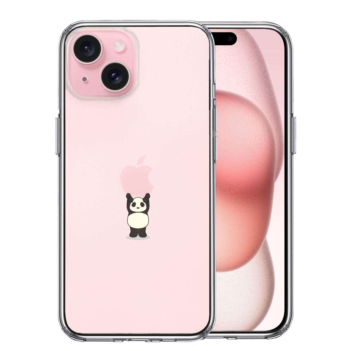 iPhone15 側面ソフト 背面ハード ハイブリッド クリア ケース パンダ 重量挙げ 並感