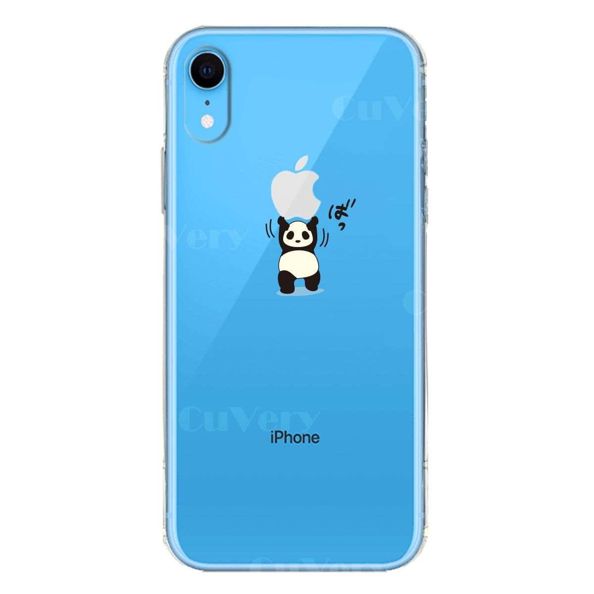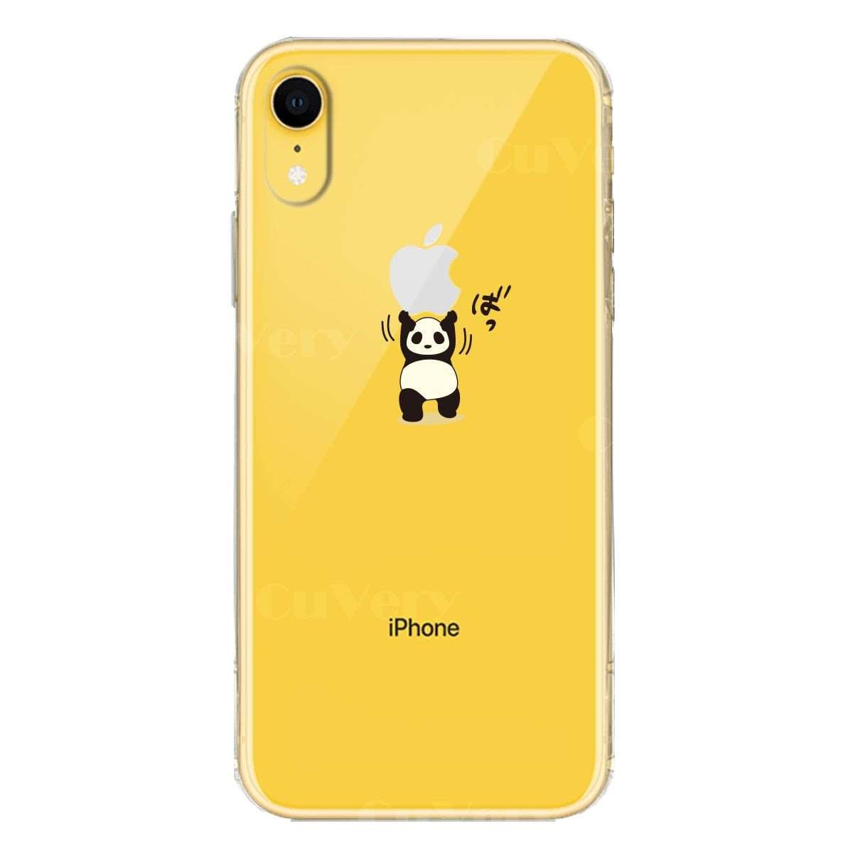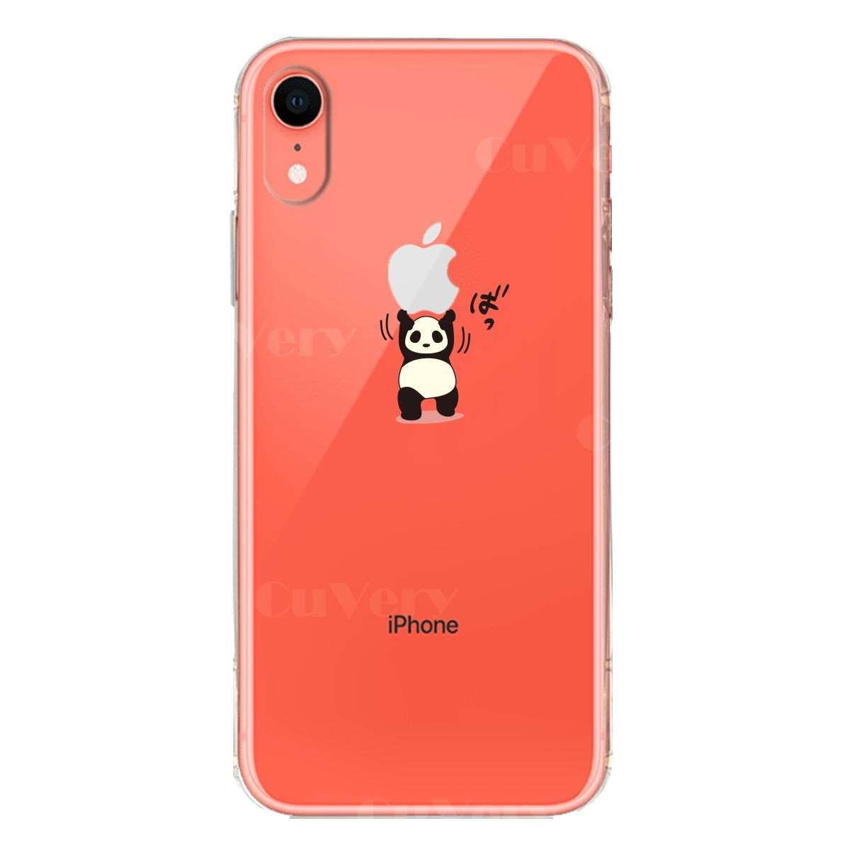 iPhoneXR ワイヤレス充電対応 ソフト クリア 透明 ケース カバー パンダ 重量挙げ 努力感