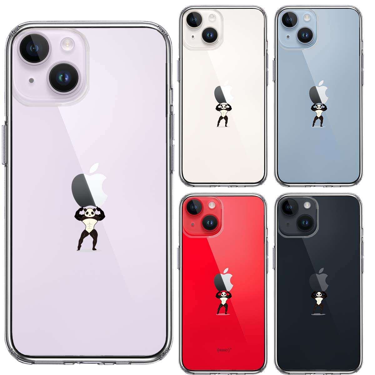 iPhone14 側面ソフト 背面ハード ハイブリッド クリア ケース パンダ 重量挙げ まっちょ 感