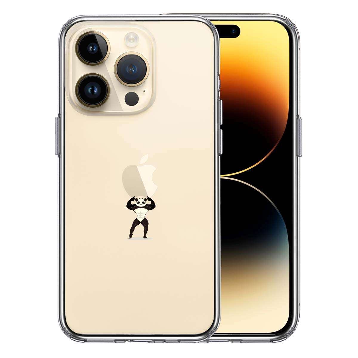 iPhone14 Pro 側面ソフト 背面ハード ハイブリッド クリア ケース パンダ 重量挙げ まっちょ 感